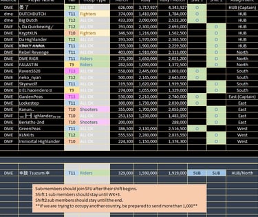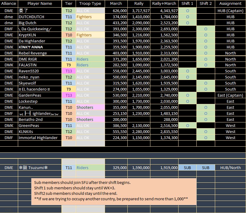5. Sub-members should send their troops when there is room in the Hub or turrets. Send 1,000 troops unless otherwise instructed.